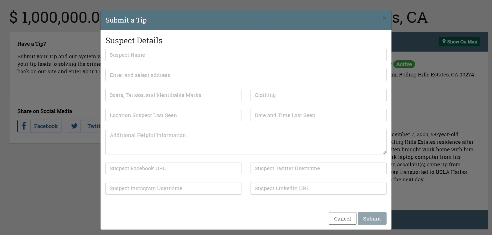 Page Application (SPA) that lets users post complaints about the crimes that are