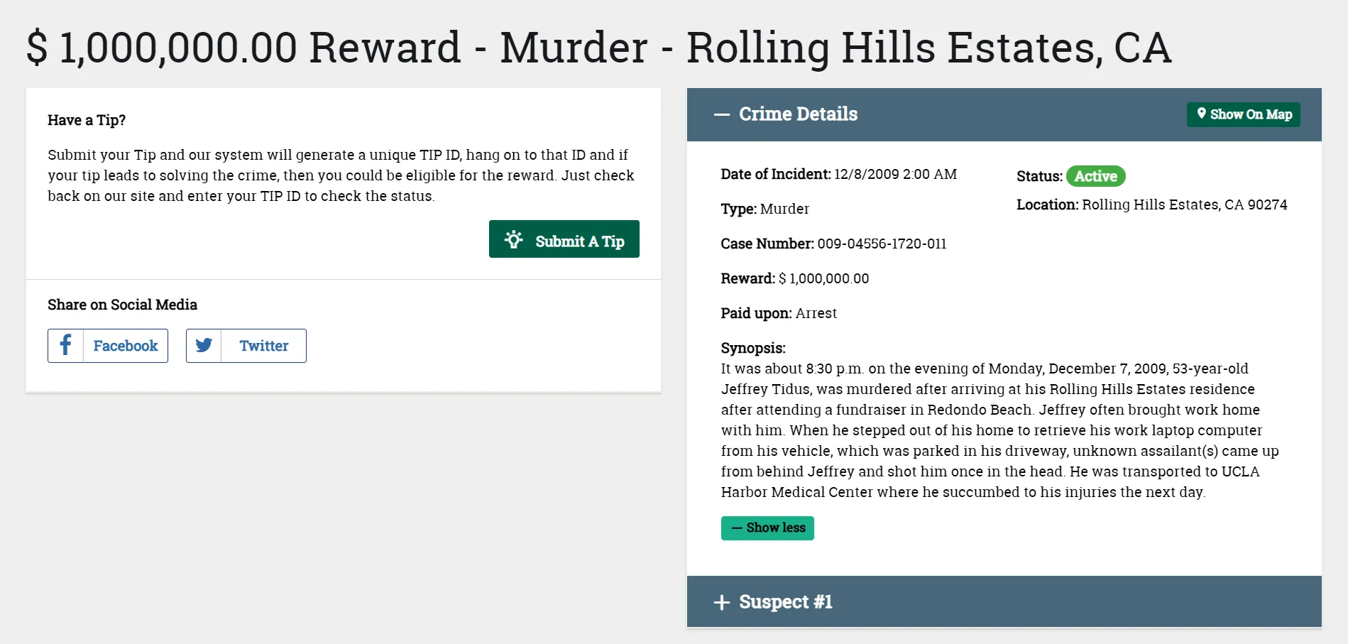occurring in the neighbourhood and seeks information about the criminals while rewarding